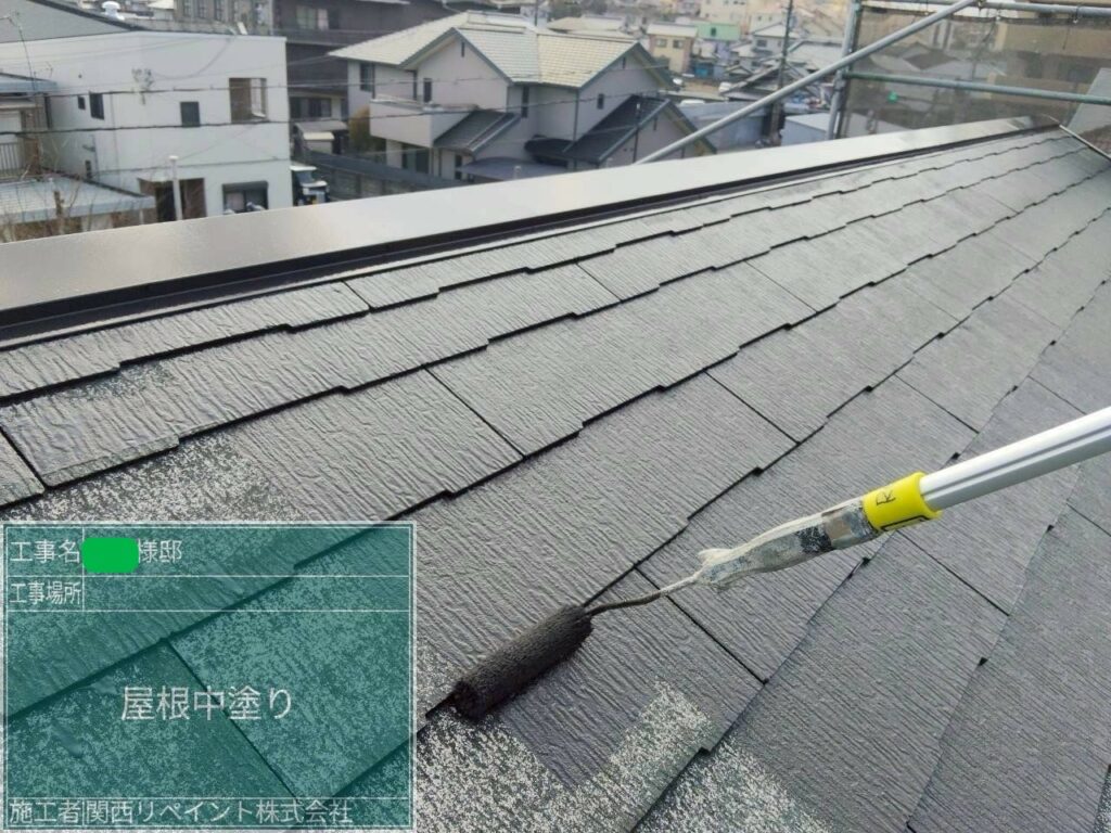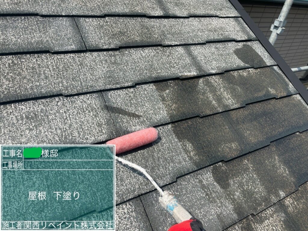 下塗りでは、屋根材と上塗り塗料をしっかり密着させるための重要な工程です。